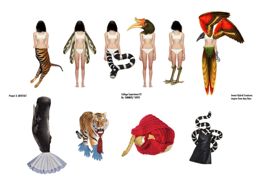 Use the concept of Combination, combine animals and humans, letting this process become invent hybrid creatures. And experiment with garments on animals.