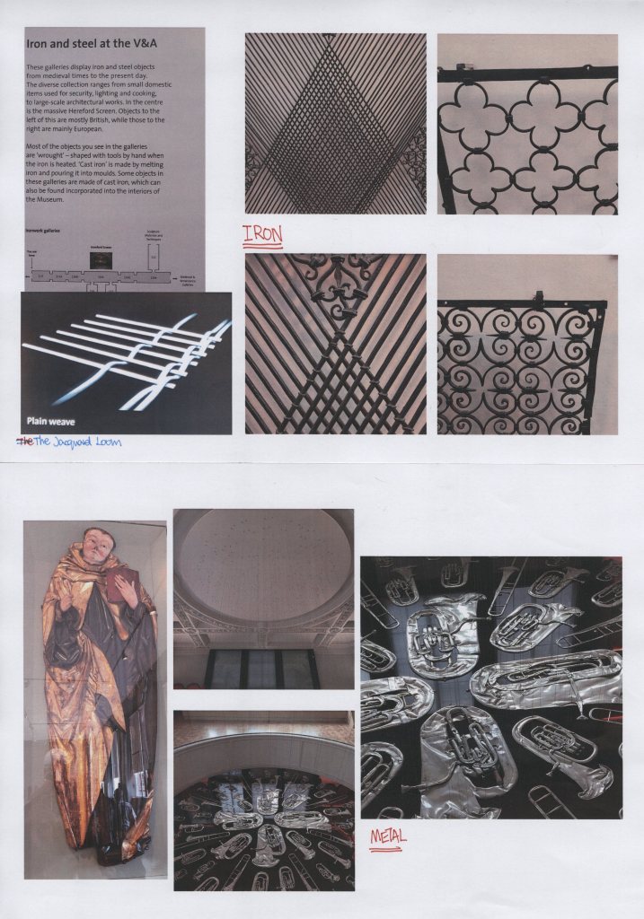 In fact, my choice is more than five specific artefacts/object. I also found some commonalities to link them. *(Use red colour font to indicate the type of material, Blue colour is the tittle and pencil line is my own thought annotation.) Specific different angle pictures and introductions recorded in previous trip blog.